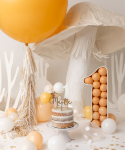 - Globos en el piso. Son 30 globos chicos que ponemos en el piso para hacer tu cake smash aún más lindo y divertido